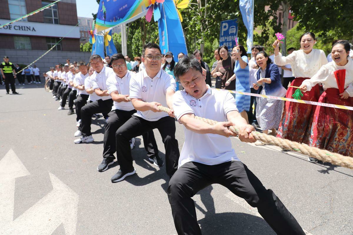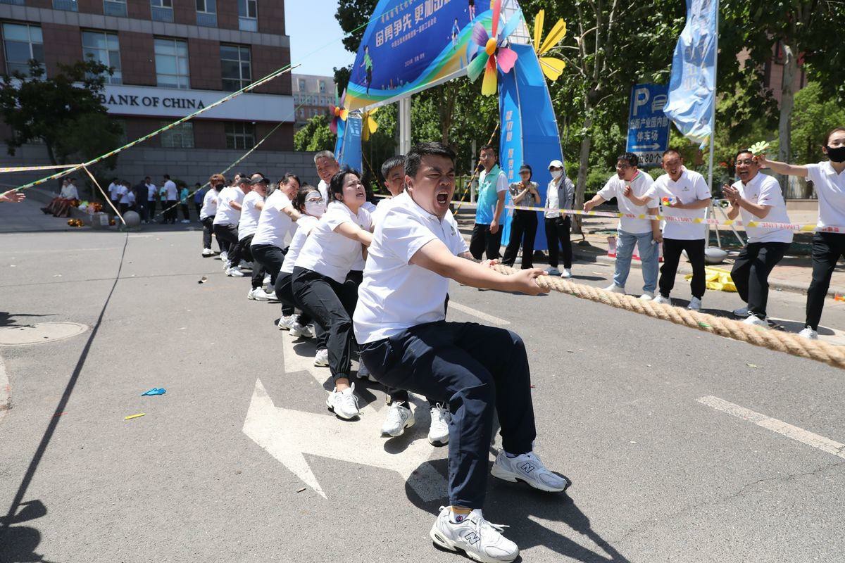 开幕式后,首场拔河比赛随即开赛。赛场上呐喊声震天,各代表队队员你争我夺,互不相让,运动会气氛一再推向高潮。